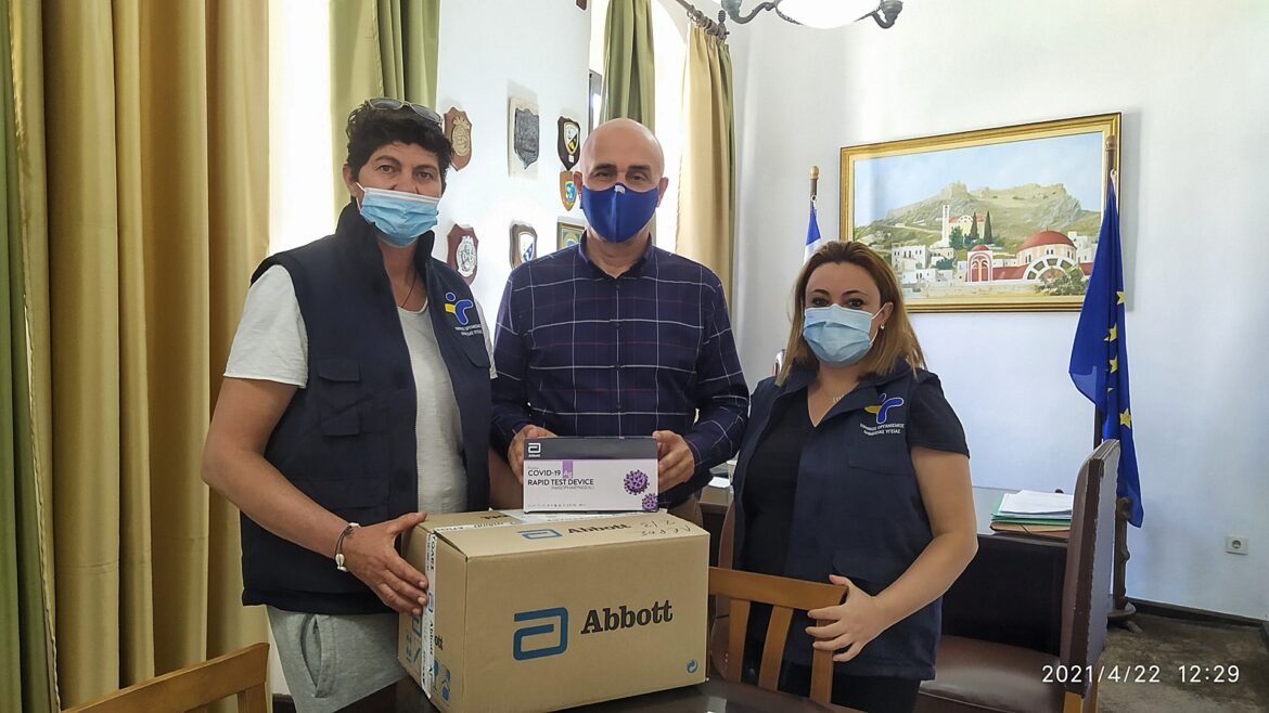 Την Πέμπτη 22 Απριλίου 2021 παραδόθηκαν από το Δήμαρχο Λέρου εκ μέρους της Δημοτικής Αρχής πεντακόσια (500) Abbott Rapid Test από τα χίλια (1000) που έχει προμηθευτεί ο Δήμος μας, στην ορισμένη εκπρόσωπο του ΕΟΔΥ κα Γεροδημου Στυργιανή συνοδευόμενη από την κα Τυρίκου Ευτυχία, με σκοπό να χρησιμοποιηθούν για τη διεξαγωγή τεστ στους συμπολίτες μας.