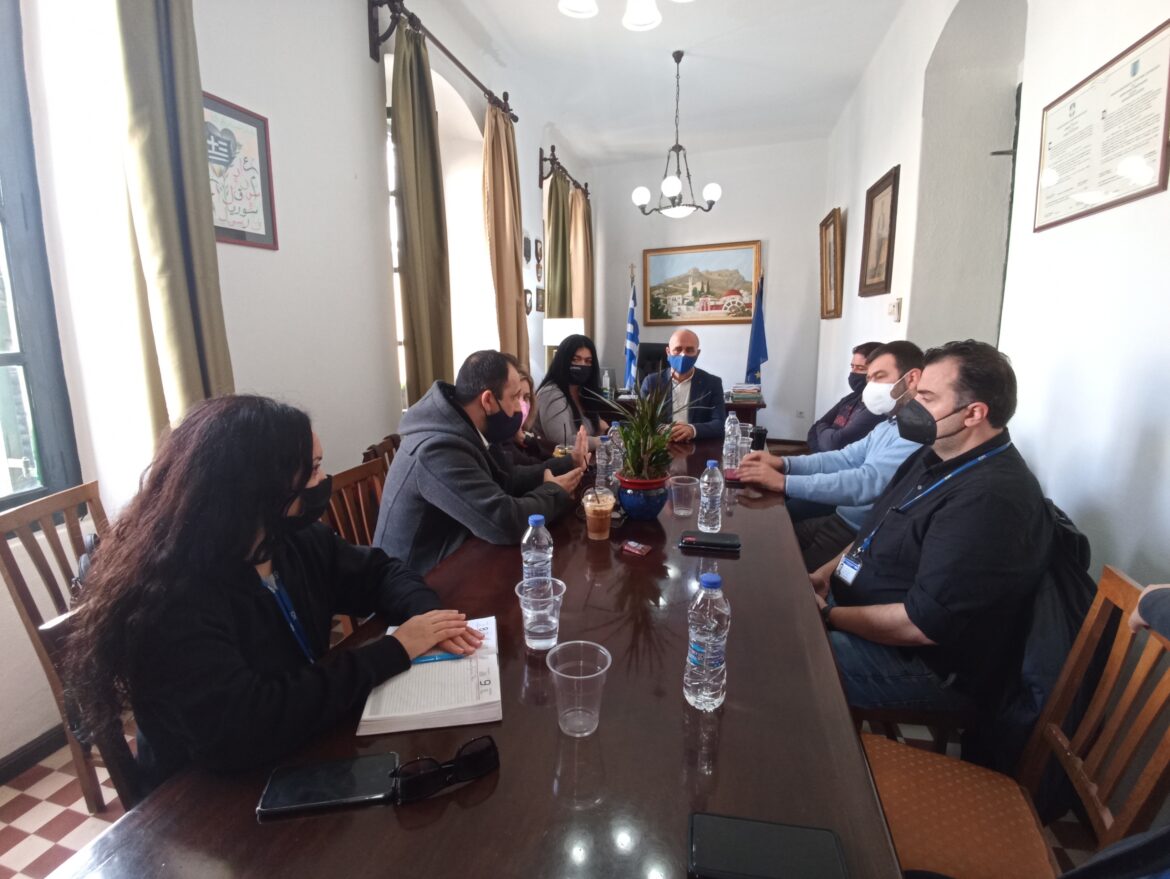 Το Γραφείο Δημάρχου επισκέφθηκε η προϊσταμένη του Υπουργείου Μετανάστευσης και Ασύλου κ. Ευσταθία Χιλιαρχάκη και εκπρόσωποι της ΔΟΜ κ. Παναγιώτης Χατζηαυγουστίδης, κ. Στράτος Κιορογλανίδης και η κα Γεωργία Μήτσικα, με σκοπό να συζητηθούν θέματα διαχείρισης έκτακτης ανάγκης στη νέα δομή προσφύγων/μεταναστών.