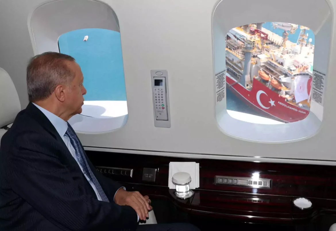 Στο λιμάνι Τασουτζού της Μερσίνας ο Ρετζέπ Ταγίπ Ερντογάν επιθεώρησε το «Αμπντουλχαμίντ Χαν», το τουρκικό πλωτό γεωτρύπανο που ετοιμάζεται να αποπλεύσει για Ανατολική Μεσόγειο. Όπως είπε ο Τούρκος Πρόεδρος, το πλοίο θα κατευθυνθεί στον κόλπο της Αλεξανδρέττας, 55 χιλιόμετρα από την ακτή του Γαζή Πασά (σ.σ. βόρεια της Κύπρου).