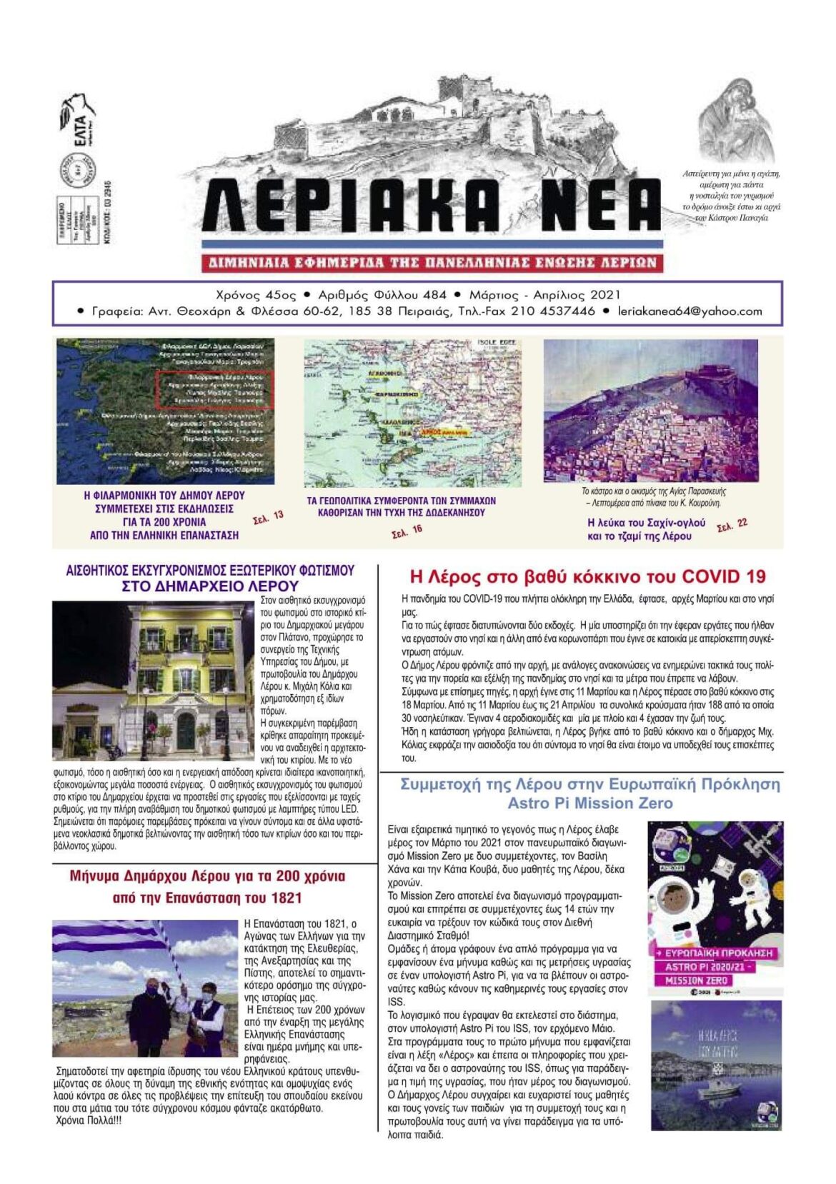 Κυκλοφόρησε το 484 φύλλο των “Λεριακών Νέων ”