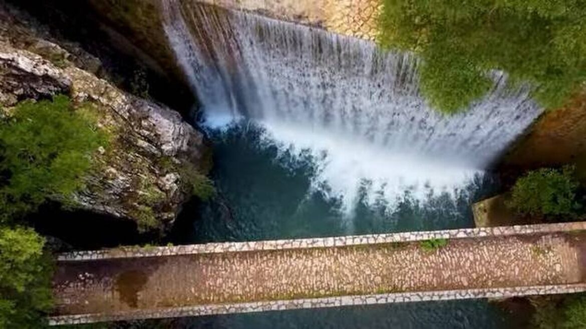 Οι τεχνητοί καταρράκτες που πέφτουν πίσω από αυτό από ύψος 12 μέτρων και μοιάζουν με νεροκουρτίνα, αλλά και αυτοί που ρέουν ακριβώς μπροστά του, ακόμα και αν το δικό τους ύψος φτάνει μονάχα τα δύο μέτρα, κλέβουν τις εντυπώσεις, ενώ ταυτόχρονα δίνουν μια ξεχωριστή εικόνα στην τοποθεσία, που πλέον αποτελεί πόλο έλξης χιλιάδων επισκεπτών.